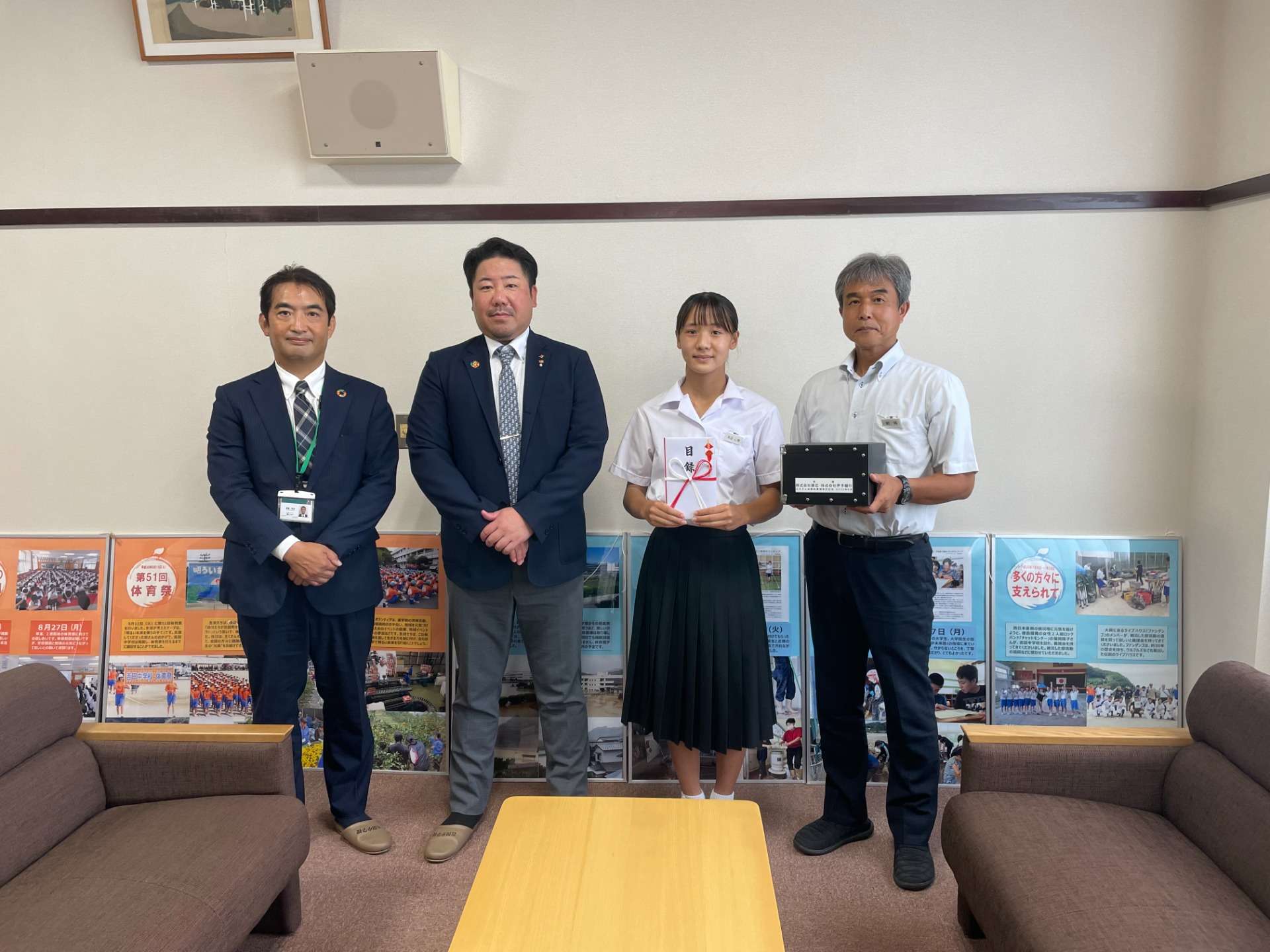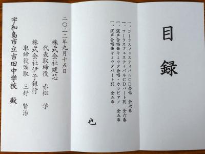 弊社と連名で社長の故郷で出身校である吉田中学校に寄贈し、贈呈式に出席してきました。